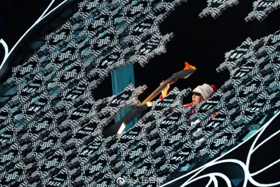 最后一棒火炬手是北京2008年残奥会男子三级跳远F11级冠军李端,他是一名视力障碍运动员。他将手中的火炬嵌入雪花火炬台,微火留在所有人心中。