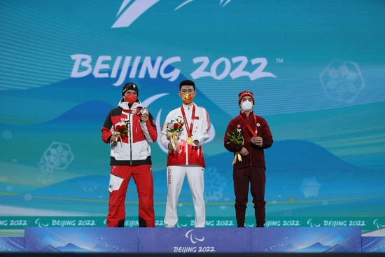 3月6日18:00,位于世园公园国际馆的延庆赛区颁奖广场,举行北京冬残奥会男子超级大回转站姿组颁奖仪式。梁景怡站上了冠军领奖台。