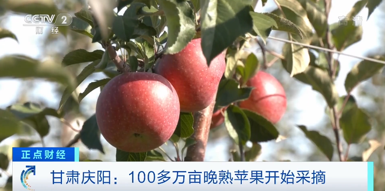 这几天,甘肃庆阳的100多万亩晚熟苹果开始集中采摘。一个个色泽红润、硕大饱满的苹果挂满枝头,趁着晴好天气,果农们忙着采摘、分拣、包装。
